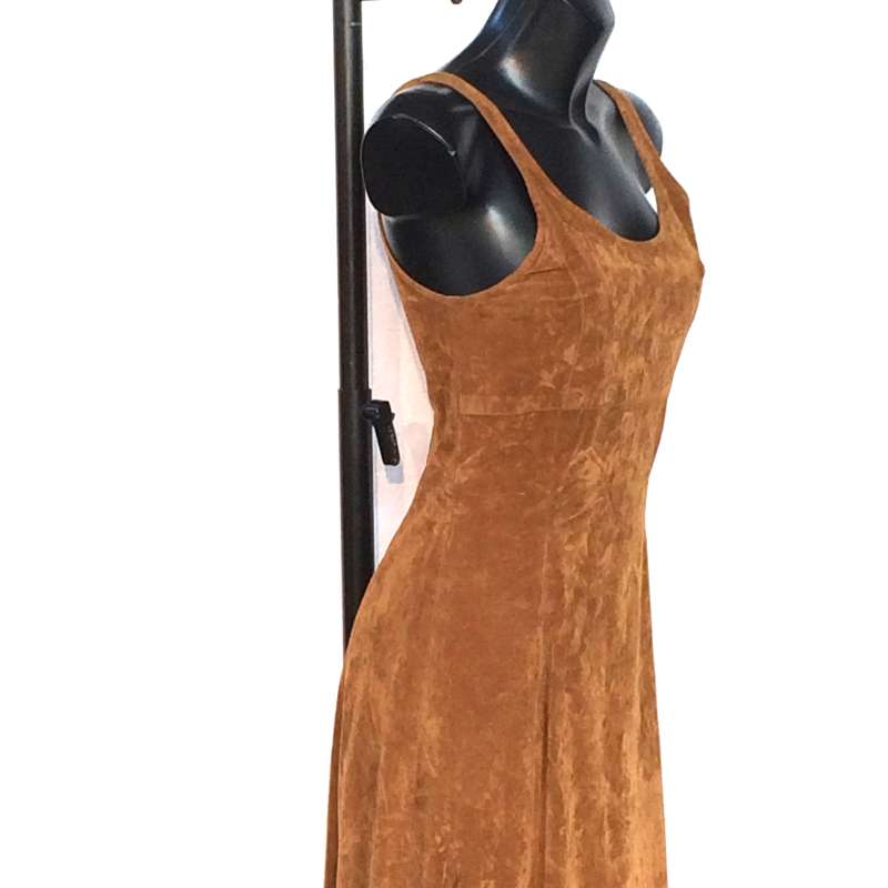 dress ALMSEE TRACHTEN size S vintage 1980s leather & linen