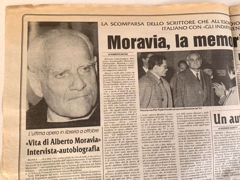 Moravia, la memoria del Novecento - estratto da Gazzetta di Reggio 27 settembre 1990