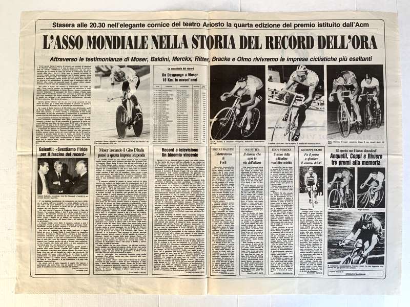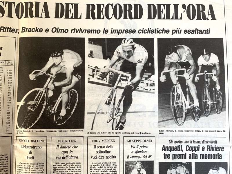 L'asso mondiale nella storia del record dell'ora - estratto da Gazzetta di Reggio 4 marzo 1988