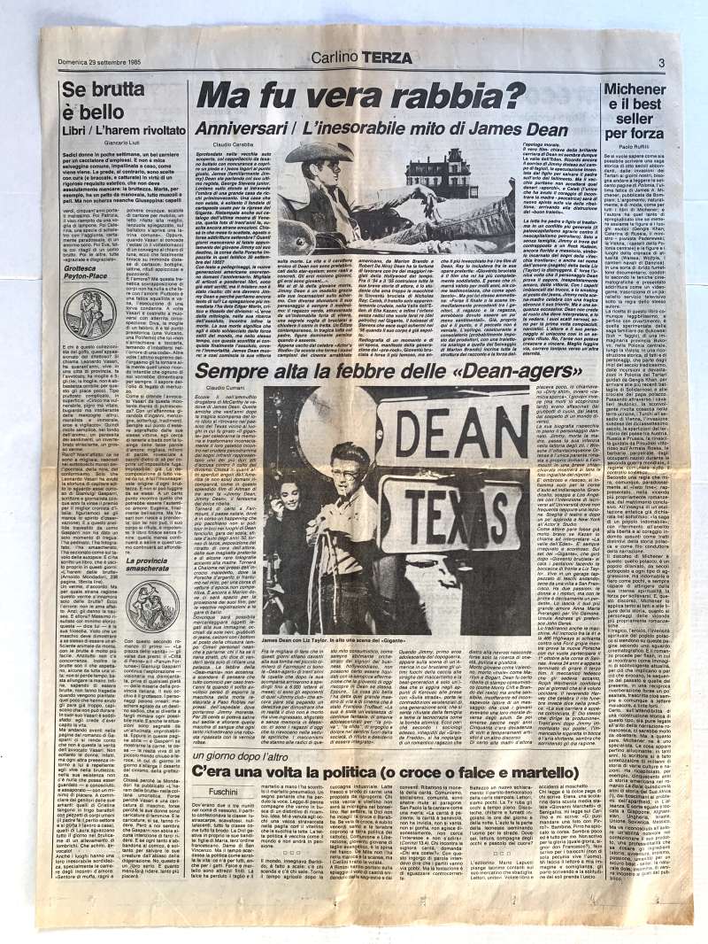 Ma fu vera rabbia? Anniversari, l'inesorabile mito di James Dean - estratto da Il Resto del Carlino 29 settembre 1985