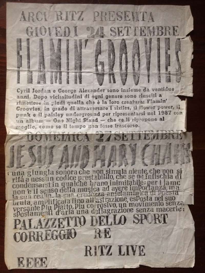 locandina originale FLAMIN' GROOVIES e JESUS AND MARY CHAIN live 1987 Correggio e Novellara (RE)