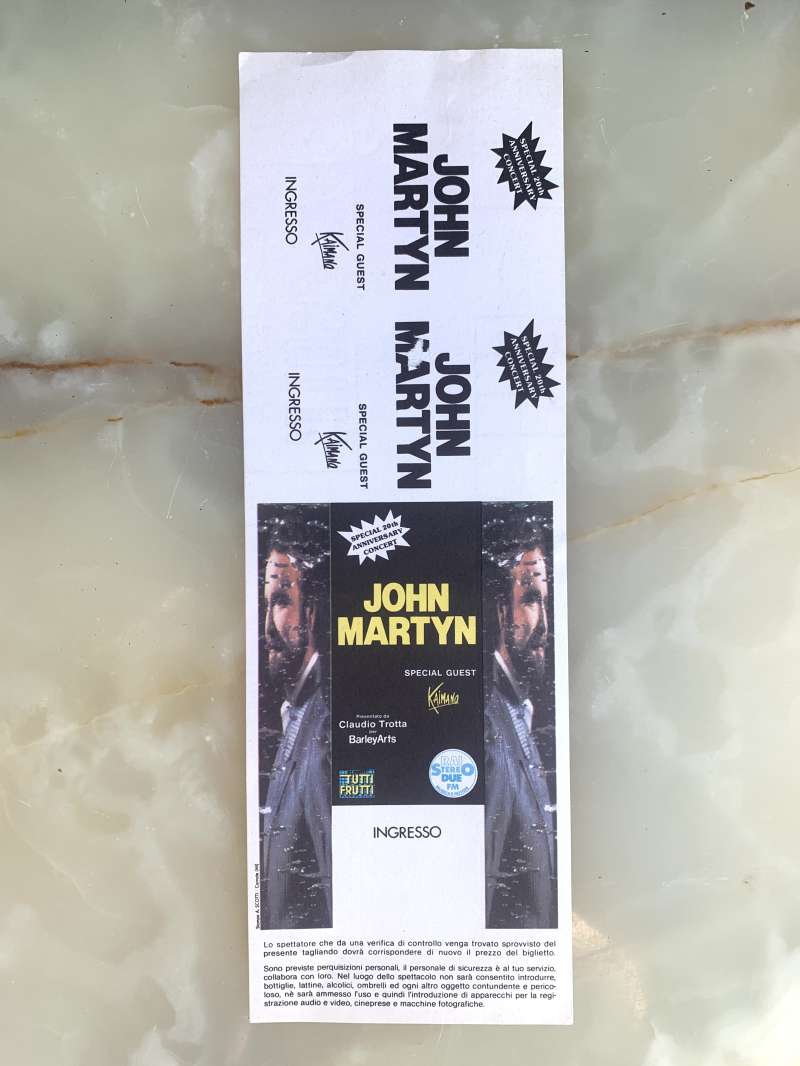 biglietto originale JOHN MARTYN Special Anniversary Concert 1986 Milano Rolling Stone