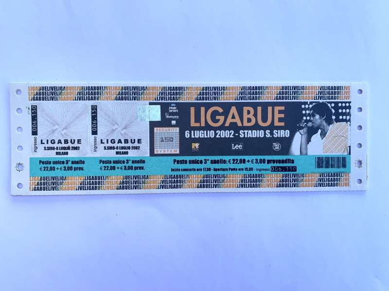 biglietto originale LIGABUE Fuori Come Va? Live 2002 Milano Stadio San Siro