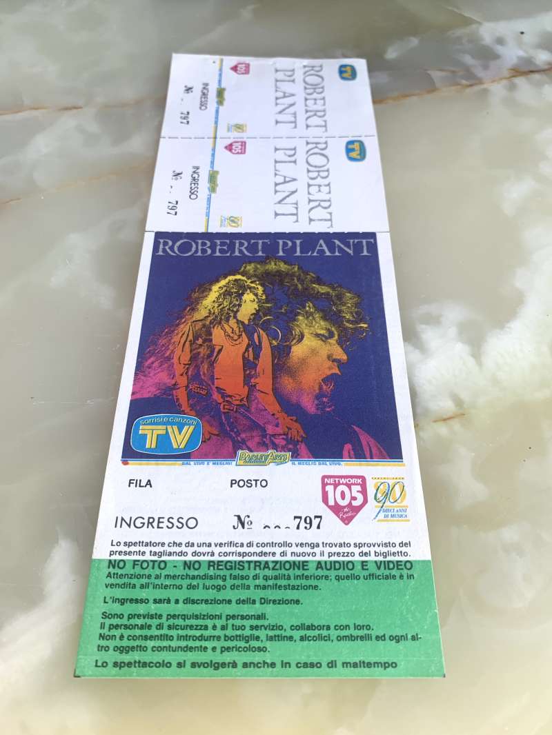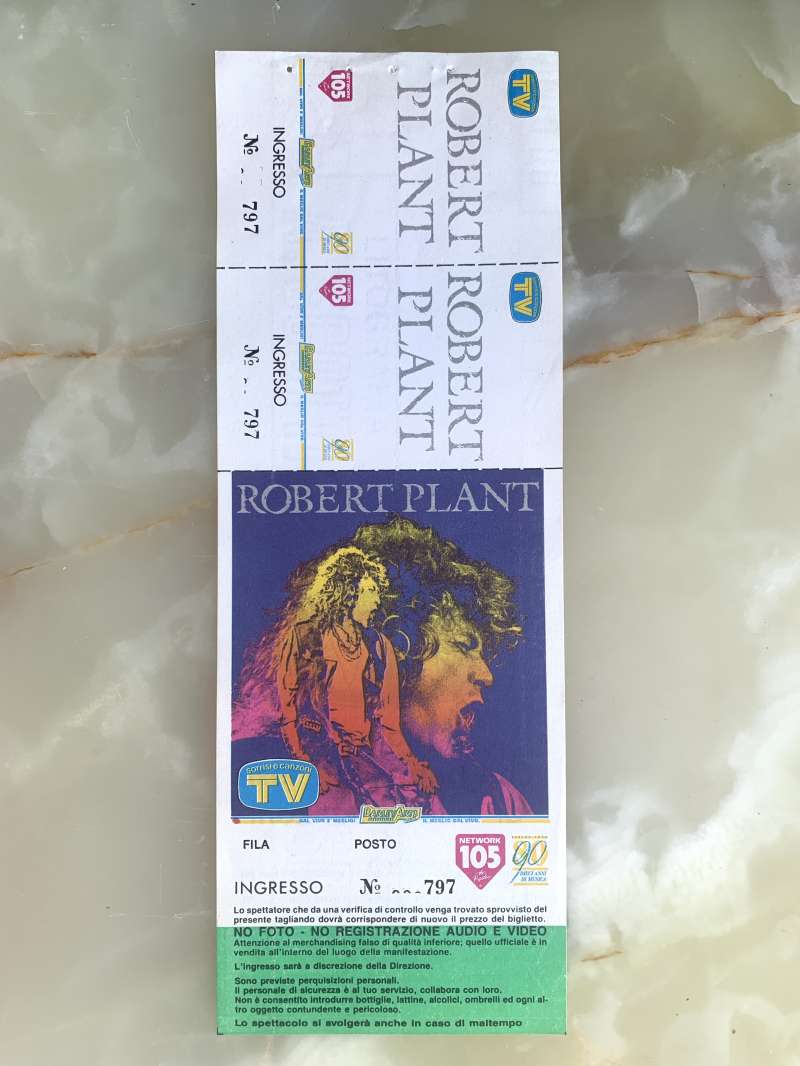 biglietto originale ROBERT PLANT Manic Nirvana Tour 1990 Milano Teatro Orfeo