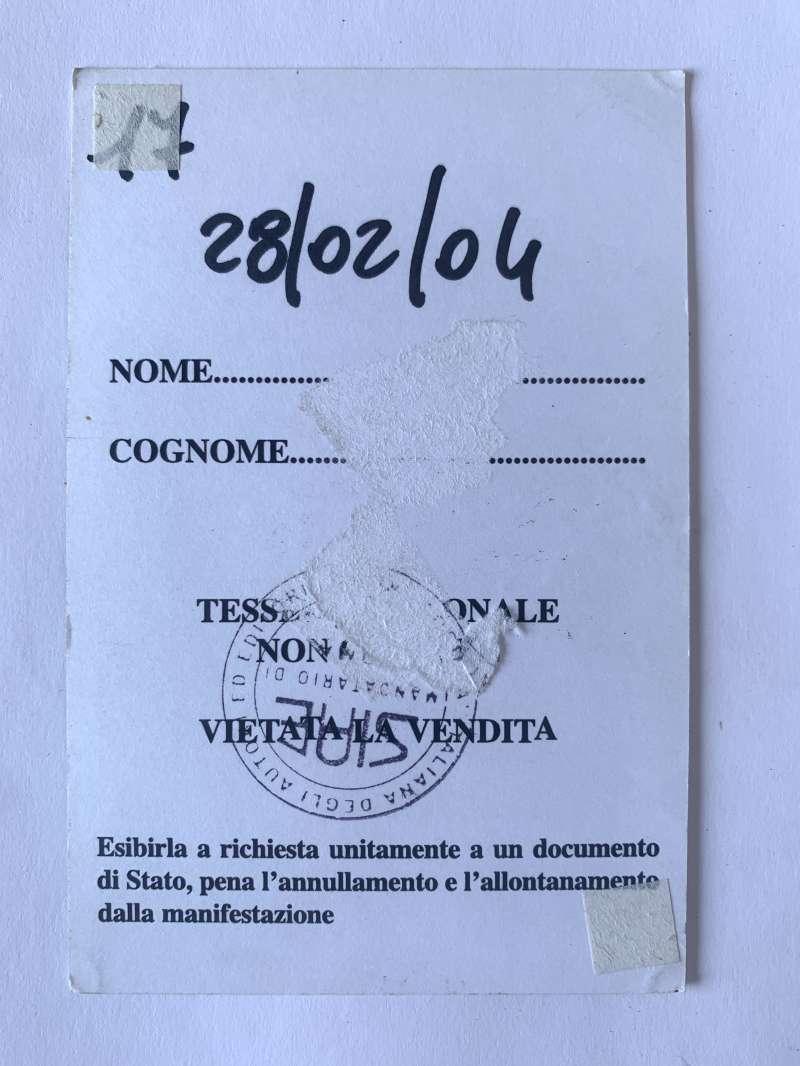 pass GUEST originale del Crescendo e Cercando Tour 2003 - 2004 di Claudio Baglioni, data del 28/02/2004 al Gazomentro di Roma in cartoncino cm 12x8 con logo SIAE