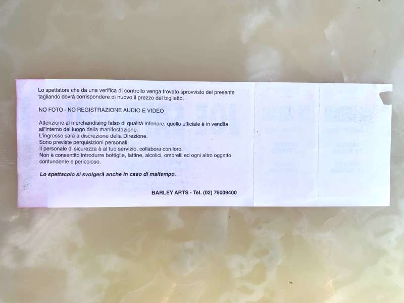 biglietto originale invenduto del concerto di Joe Satriani al Palasesto di Milano il 12 marzo 1993 guest Adrian Legg. Il biglietto è completo di matrice perché non è stato venduto: materiale originale raro ed unico per veri collezionisti, recuperato presso l’agenzia che ha organizzato il concerto, disponibile in quantità limitata.