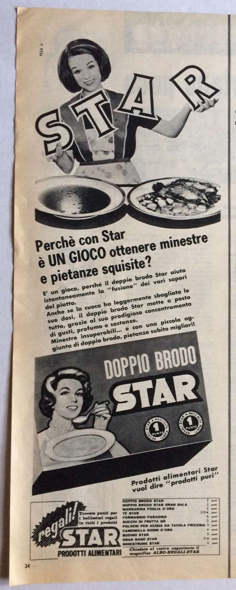 Pubblicità originale STAR Dadi anni 60